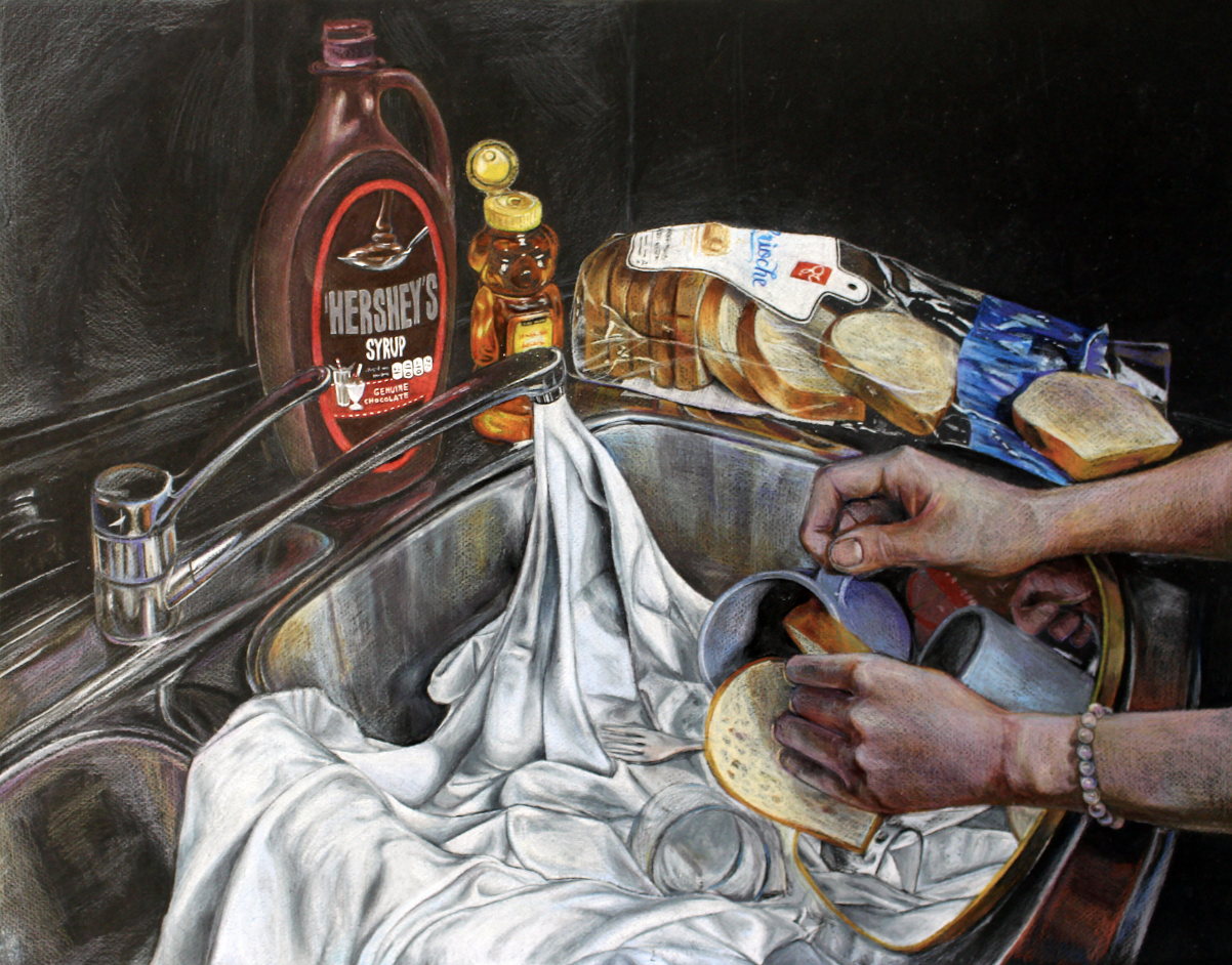plaster, PVA glue, aluminium wire, tin foil, borax, acrylic paint, clay
